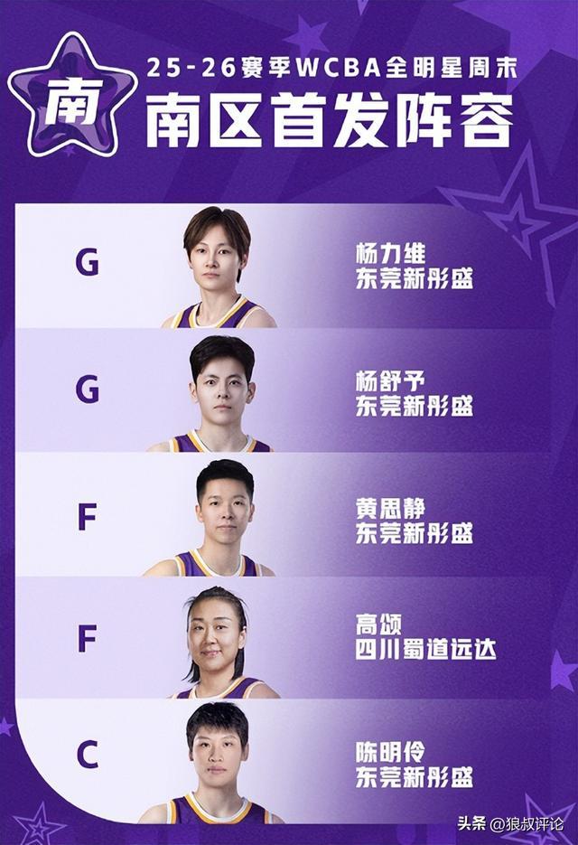 南區(qū)首發(fā)球員為:楊力維、楊舒予、黃思靜、陳明伶(東莞新彤盛)、高頌(四川蜀道遠(yuǎn)達(dá)),楊力維以224706票成功當(dāng)選票王。