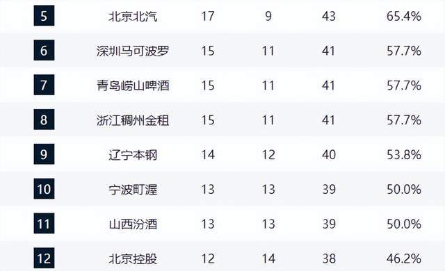 10至12名球隊陷入保級拉鋸。寧波隊11勝15負,面對強隊屢遭碾壓,與前列差距懸殊;山西隊10勝16負,潘江執(zhí)教風(fēng)格保守,外援表現(xiàn)不穩(wěn)定,季后賽邊緣徘徊;北控隊?wèi)K敗新疆,防守端失位嚴(yán)重,10勝16負排名下滑,亟需調(diào)整戰(zhàn)術(shù)體系。