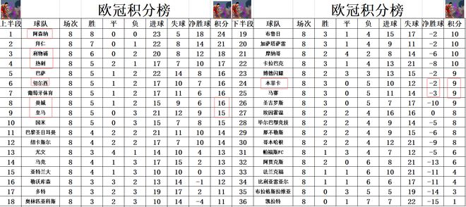 - 歐冠第7輪結(jié)束了9場(chǎng)比賽,最新積分榜如下!