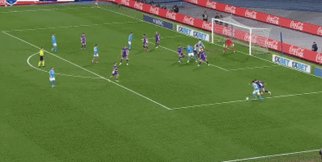 第11分鐘,那不勒斯終于打出久違的快速反擊。韋爾加拉突進到禁區(qū)前沿,一腳低射直鉆死角,那不勒斯1-0,取得夢幻般開局。隨后雙方打起了拉鋸戰(zhàn),均無法再度破門。