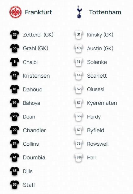 北京時(shí)間1月29日04:00,歐冠 聯(lián)賽階段第8輪,法蘭克福主場(chǎng)迎戰(zhàn)托特納姆熱刺,賽前雙方球隊(duì)首發(fā)名單公布如下:
