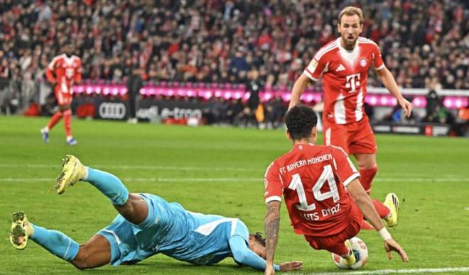 第28分鐘霍芬海姆差一點扳平比分,阿斯拉尼的頭球被門框拒之門外,不過僅僅過了7分鐘,諾伊爾就送出大禮,克拉馬里奇的進球?qū)⒈确肿分?平,半場比賽結(jié)束前,迪亞斯再度造點,讓凱恩上演梅開二度,隨后自己也取得進球,幫助拜仁帶著3-1的比分,回到了中場更衣室。