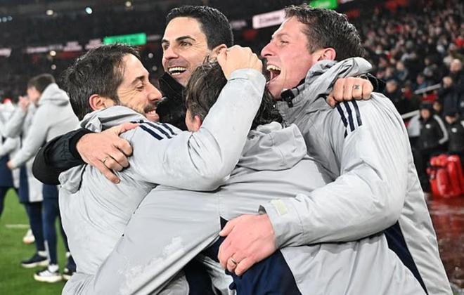 主帥阿爾特塔同樣情緒激動,他與教練團隊緊緊相擁,沉浸在執(zhí)教阿森納以來第二次闖入決賽的喜悅之中。