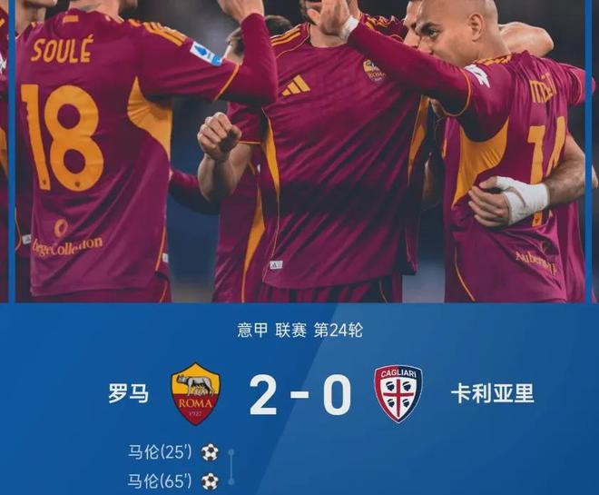 2-0拿下卡利亞里后,羅馬積分達到46分,正式追平第4的尤文圖斯!