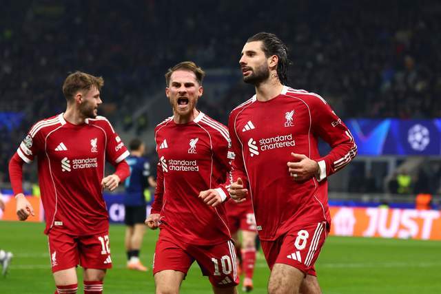 利物浦(433):阿利松/瓊斯、科納特、范戴克、科爾克茲/維爾茨、麥卡利斯特、赫拉芬貝赫/薩拉赫、?;倏?、加克波