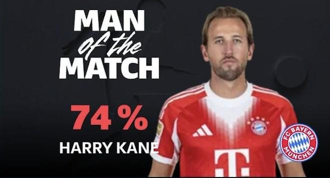 最終經(jīng)過德甲官網(wǎng)球迷投票,凱恩以74%的得票率當選全場最佳球員。