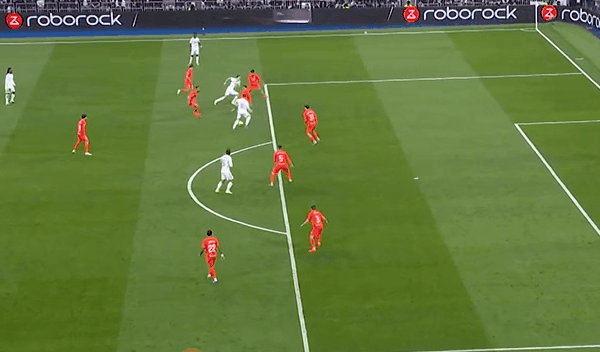 皇馬不僅進(jìn)攻離場(chǎng)、戰(zhàn)術(shù)豐富,從邊路傳中到中路的小范圍配合,以及內(nèi)切等等,球員們應(yīng)對(duì)實(shí)時(shí)的臨場(chǎng)變化,幾乎都恰到好處。邊路的維尼修斯拿球、過人自信且成功率頗高,右邊后衛(wèi)阿諾德打出了加盟皇馬后的最好狀態(tài),而回歸前場(chǎng)的巴爾韋德同時(shí)威脅十足。