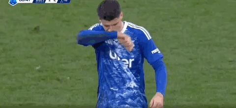 第89分鐘,莫拉塔兩黃變一紅被罰下,在場邊又與教練發(fā)生口角