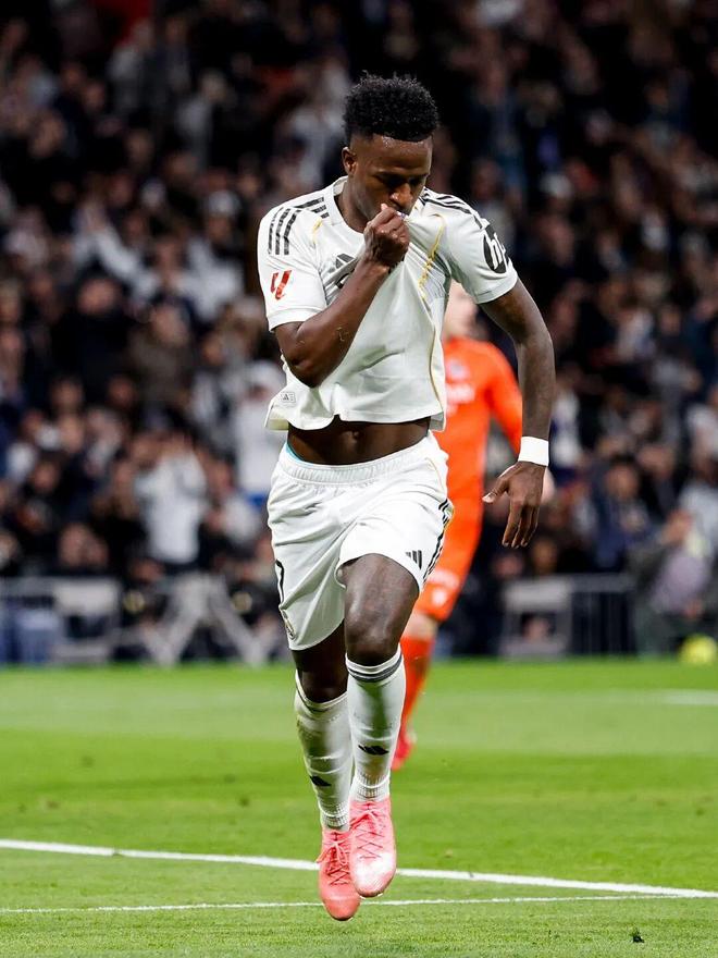 90' 維尼修斯頭槌破門被吹,錯(cuò)失帽子戲法。
