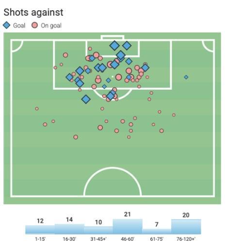 如果現(xiàn)在再回看迪亞斯的參與進(jìn)球和參與制造得分機(jī)會完整點(diǎn)位圖,你會發(fā)現(xiàn),迪亞斯最有威脅的時間主要集中在下半場前半段和后半段,這兩個足球比賽尤為關(guān)鍵的時期。本賽季,拜仁在落后或膠著的比賽中,迪亞斯貢獻(xiàn)7球4助,獨(dú)造11球,占球隊膠著局進(jìn)球數(shù)的42%。迪亞斯的所有數(shù)據(jù),都是在全德甲所有球員壓力值最大的情況下取得的,即便這樣他也竟然也值是本賽季德甲場均評分第二的左邊鋒,但所有數(shù)據(jù)都能證明迪亞斯有一顆大心臟。