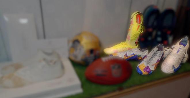 對,這雙是耐克送我的,是我們拿到第一座歐冠之后送的。這里還有一雙,是進(jìn)球紀(jì)念的.