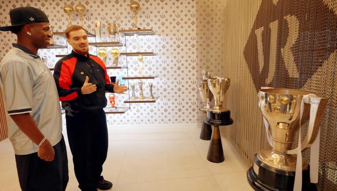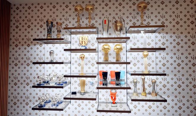 對,這是我家。這里是我在馬德里拿到的一些成就,我在巴西也有一部分獎(jiǎng)杯。