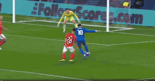 第9分鐘,姆巴佩面對三人防守,沒有任何預兆,突然起腳射門,造成了切魯賓的脫手。