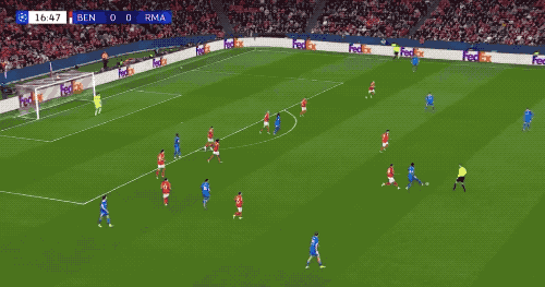 上半場的后半段,皇馬開啟了狂轟濫炸模式,本菲卡逐漸陷入被動,門前險象環(huán)生,切魯賓成為場上最忙碌的球員。