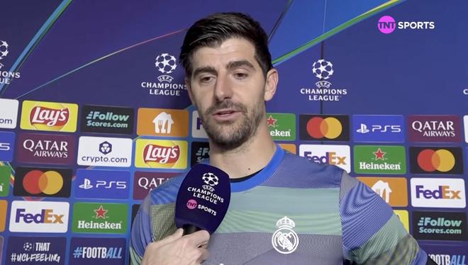 歐冠淘汰賽附加賽首回合,皇馬客場1-0戰(zhàn)勝本菲卡,皇馬門將庫爾圖瓦賽后接受了TNT體育墨西哥頻道的采訪。