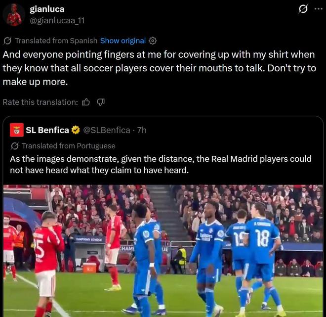 普雷斯蒂安尼的行為引起軒然大波,本菲卡官方在社交媒體發(fā)布了一段比賽切片視頻,并表示皇馬球員不可能聽(tīng)到他們認(rèn)為的本菲卡球員說(shuō)的內(nèi)容。