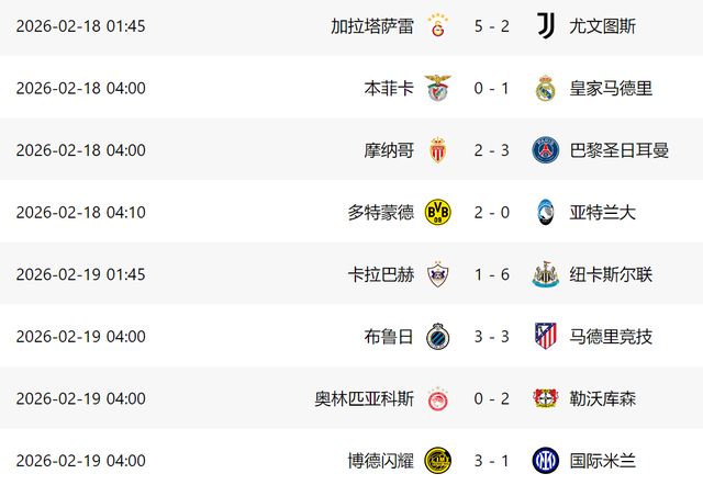 - 2026年02月18日 皇馬1-0本菲卡占先機(jī) 維尼修斯制勝+被歧視致比賽暫停 穆帥染紅