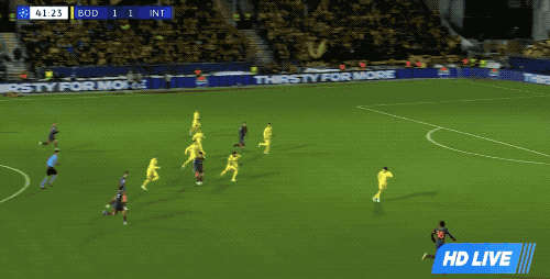 整個(gè)上半場(chǎng),國(guó)米完成了10次射門(mén),博德閃耀只有3次射門(mén),兩隊(duì)暫時(shí)戰(zhàn)成了1-1。