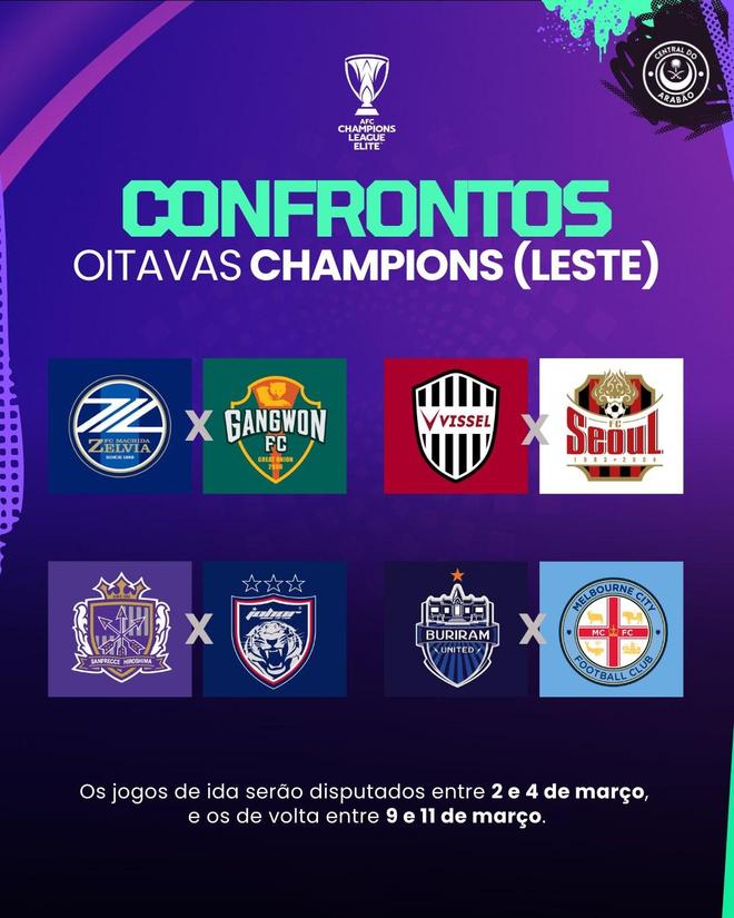 - 亞冠1/8決賽對(duì)陣:町田澤維亞vs江原,神戶勝利船vs首爾