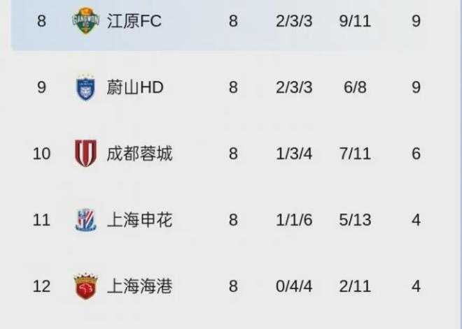 8輪4分,海港墊底。