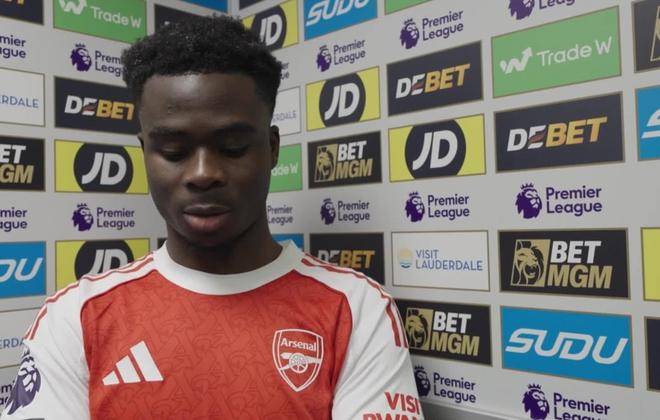 在客場2-2戰(zhàn)平狼隊(duì)的賽后,本場比賽打入一球的阿森納前鋒薩卡接受了俱樂部官方頻道的采訪。