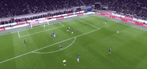 第35分鐘,米蘭打出快速反擊,福法納的斜傳打穿了國米的防線,埃斯圖皮尼安打進(jìn)了加盟球隊的第一個進(jìn)球。