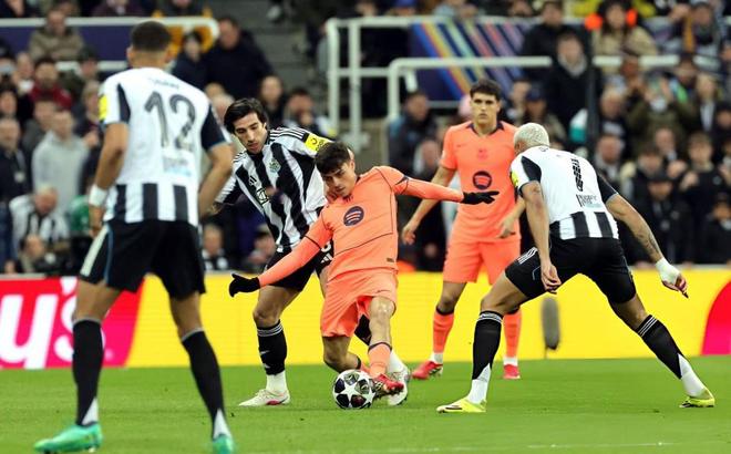 開場后,紐卡斯爾聯隊利用主場之利,頻頻向巴塞羅那的禁區(qū)發(fā)起猛攻,強硬的對抗,以及節(jié)奏的快速變化,令巴薩有些被動。并且霍安加西亞的狀態(tài)有些起伏,連續(xù)的撲救出現脫手。直到20分鐘以后,巴塞羅那才逐漸在進攻端有了像樣的攻勢,第36分鐘,巴薩前場連續(xù)反搶成功,費爾明迎球怒射被門將撲出!