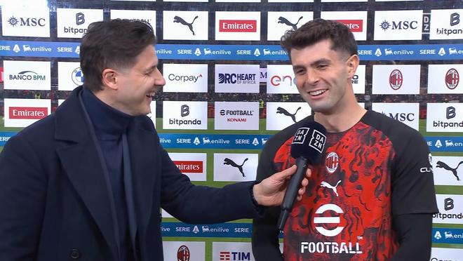 米蘭在意甲第28輪主場迎戰(zhàn)國際米蘭的米蘭德比即將開始,普利希奇在賽前接受了DAZN的采訪。