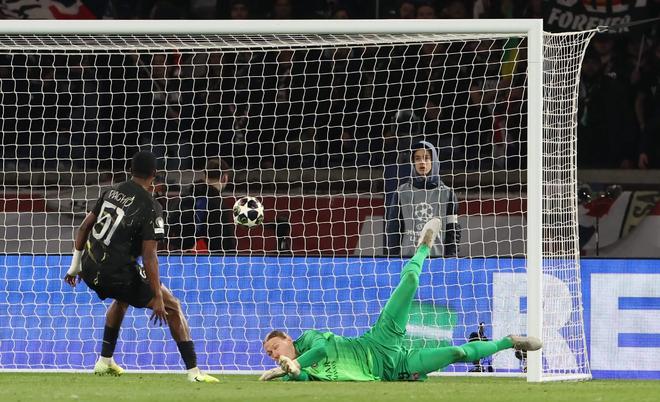 他傳出了許多好球,也有一些幸運(yùn)地找到了目標(biāo)。他還做出了幾次令人印象深刻的撲救——最突出的是上半場(chǎng)將登貝萊的閃電射門托到近門柱上——并且對(duì)巴黎圣日耳曼四個(gè)進(jìn)球中的三個(gè)都無(wú)能為力。