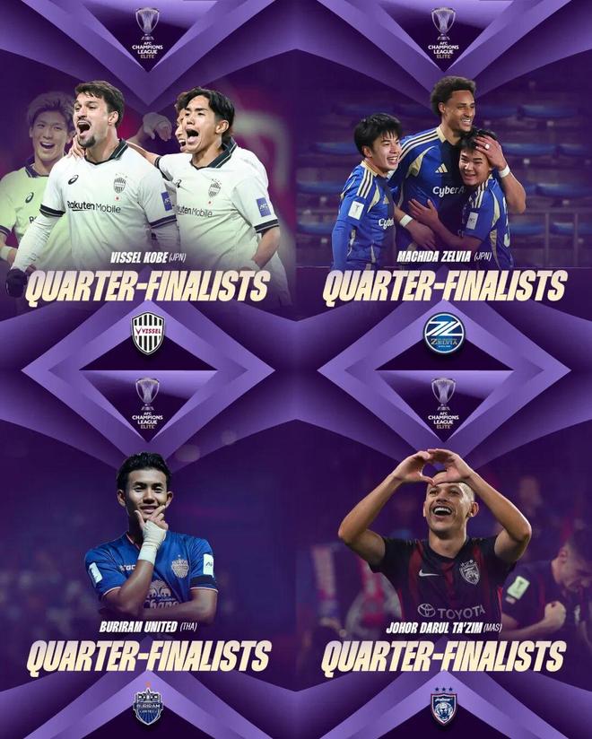 ▲本賽季亞冠精英聯(lián)賽東亞區(qū)4強(qiáng),J聯(lián)賽兩席,馬、泰各占一席。