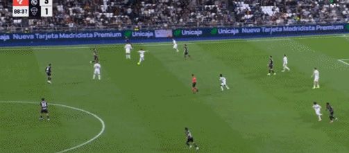第44分鐘,巴爾韋德斜傳策動(dòng)反擊,隨后接到弗蘭-加西亞的倒三角傳球,禁區(qū)前沿變向晃開角度順勢(shì)兜射,皮球直掛死角,皇馬再下一城,2-0!
