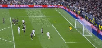 第39分鐘,威尼修斯定位球橫敲,巴爾韋德重炮射門,迪圖羅將球撲出,佩德羅薩頭球解圍不遠(yuǎn),呂迪格凌空掃射破門,皇馬打破僵局,1-0!