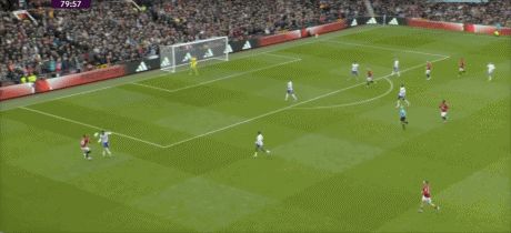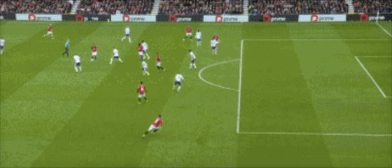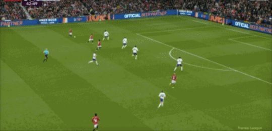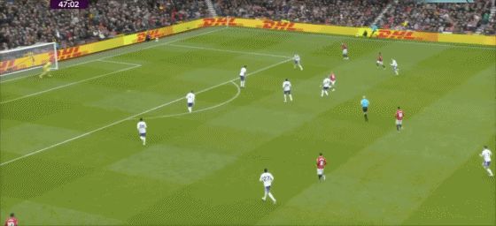 第43分鐘,曼聯(lián)反擊,B費(fèi)左路內(nèi)切,禁區(qū)外右腳遠(yuǎn)射打偏。
