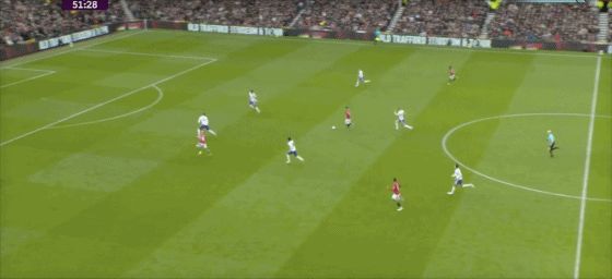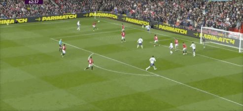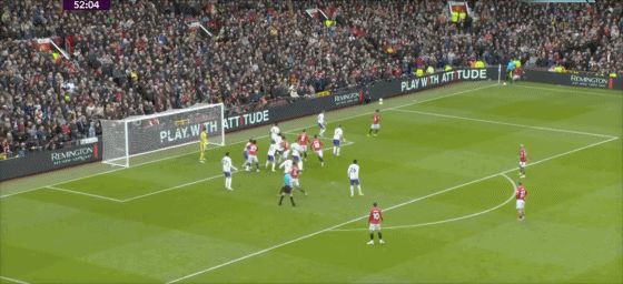 第53分鐘,B費(fèi)右側(cè)角球傳中,卡塞米羅前點(diǎn)頭球攻門,皮球擊中后門柱入網(wǎng),1-0!曼聯(lián)取得領(lǐng)先。