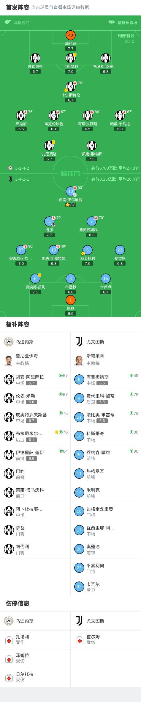 - 半場(chǎng):烏迪內(nèi)斯0-1尤文,博加連場(chǎng)破門(mén)