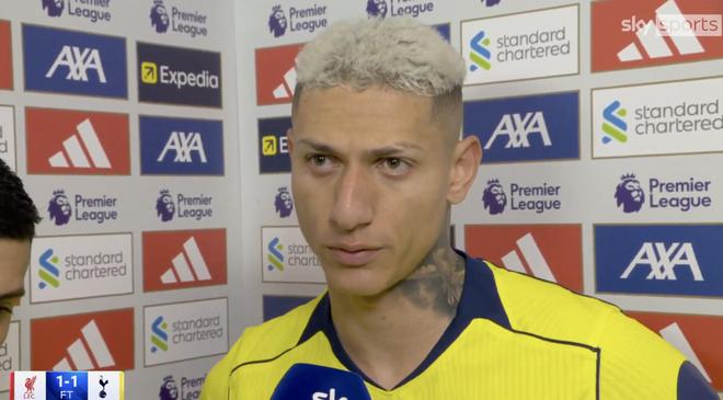 英超第30輪,熱刺客場(chǎng)1-1戰(zhàn)平利物浦,此役打入扳平比分進(jìn)球的熱刺前鋒里沙利松賽后接受了天空體育的采訪。