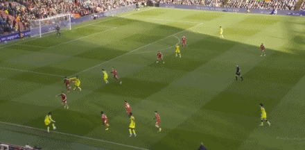 第43分鐘,范戴克橫傳門前,可惜無人包抄到