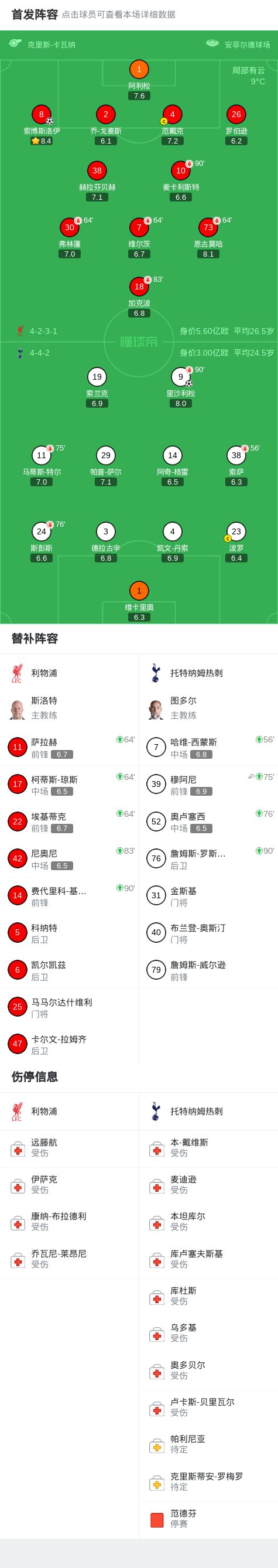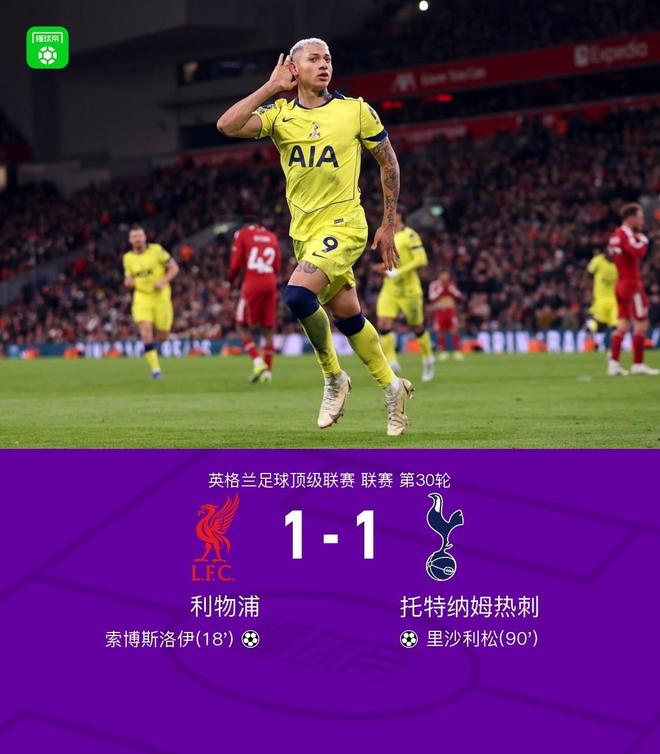 - 劍南春|利物浦1-1熱刺,索博斯洛伊任意球破門,里沙利松絕平