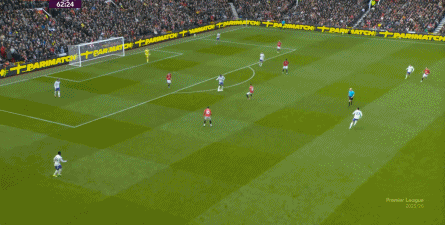 就在這次制造的前場界外球里,曼聯(lián)轉(zhuǎn)移到左路,從而制造了本場比賽的第一次進(jìn)攻威脅,也就是上半場前半段只能打出來的傳中: