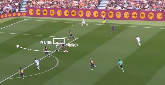 不只是進(jìn)攻端,博納爾最大的賣點(diǎn)是他在防守端同樣能沉底中衛(wèi)。這一次看到塞維利亞球員桑切斯前插,博納爾先拉一把,隨后卡住身位,去到對(duì)方身前,保護(hù)住禁區(qū),這也是博納爾最讓人喜歡的地方之一。