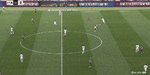 上半場補(bǔ)時第3分鐘,胡安盧右路傳中,奧索打遠(yuǎn)角破門,塞維利亞扳回1球。