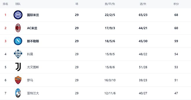 科莫贏下這場比賽,意味著在聯(lián)賽取得4連勝。法布雷加斯真是神了,率領(lǐng)科莫高歌猛進(jìn)。不知不覺科莫已經(jīng)殺入了前4,改變了爭四格局。科莫只比身前的那不勒斯少5分。53分的尤文圖斯則被擠到了第5名的位置。至于羅馬,連續(xù)3輪不勝,丟掉了太多分?jǐn)?shù),排名已經(jīng)掉到第6,爭四形勢不容樂觀。