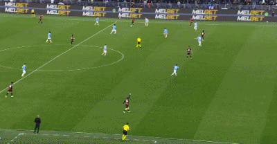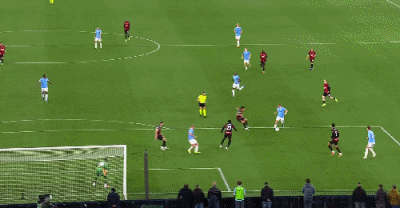 第36分鐘,馬爾蒂尼突入禁區(qū)前低射,邁尼昂沒收皮球