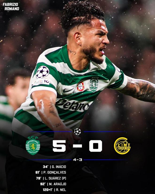 而本場(chǎng)潰敗后,博德閃耀在歐冠的5連勝也就此被終結(jié)。盡管次回合未能續(xù)寫奇跡,但這支來(lái)自挪威小城的球隊(duì),已用黑馬姿態(tài)在歐冠賽場(chǎng)給球迷留下深刻印象。