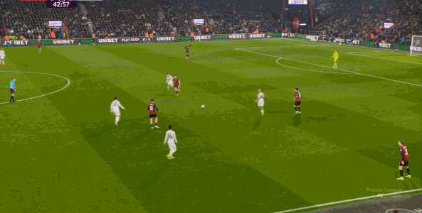 但整體來說,曼聯(lián)還是占據(jù)了上風,并且形成了左右兩路的優(yōu)勢局面,反觀伯恩茅斯,在主場這個優(yōu)勢面前,只在22分鐘前后打出了一波進攻,分別捕捉了布魯諾和達洛特的失誤,其余大部分時候都難有作為: