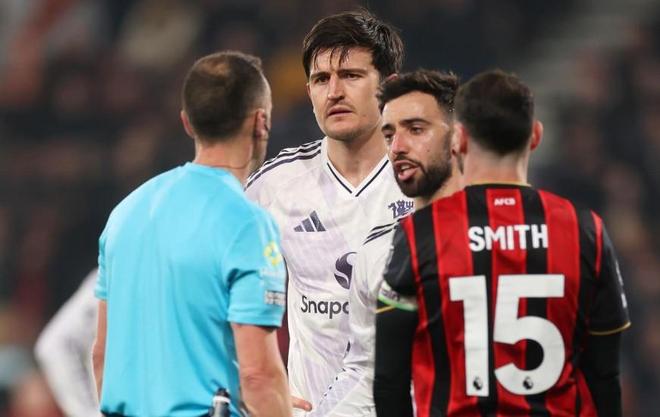 比賽第67分鐘,阿馬德在伯恩茅斯禁區(qū)內(nèi)被防守球員從側(cè)后方推倒,主裁判與VAR均未做出點(diǎn)球判罰;僅11分鐘后,馬奎爾在禁區(qū)內(nèi)拉倒埃瓦尼爾森,裁判當(dāng)即出示紅牌并判罰點(diǎn)球,VAR復(fù)核后維持原判。兩次相似接觸,卻出現(xiàn)截然相反的判罰結(jié)果,判罰尺度引發(fā)曼聯(lián)將帥與球迷強(qiáng)烈不滿。