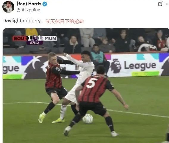 第68分鐘,曼聯(lián)邊鋒迪亞洛突入禁區(qū),被伯恩茅斯后衛(wèi)特呂費爾從身后明顯拉拽后倒地。慢鏡頭顯示,拉人動作清晰,重心失衡明顯。但主裁毫不猶豫示意比賽繼續(xù),VAR也未介入。賽后英超官方輕描淡寫解釋:“動作不足以構(gòu)成犯規(guī)”。