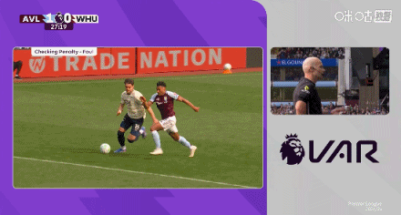 第27分鐘,沃特金斯禁區(qū)倒地,裁判觀看VAR后取消點(diǎn)球判罰