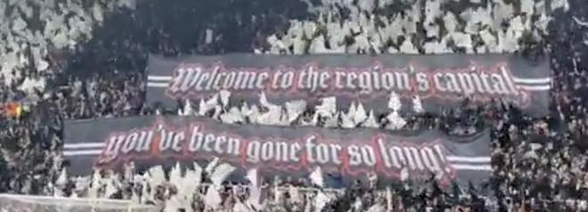 除此之外,紐卡主場(chǎng)還有文字tifo,上面寫(xiě)著:“歡迎來(lái)到本地區(qū)的首府,你們已經(jīng)離開(kāi)太久了!”