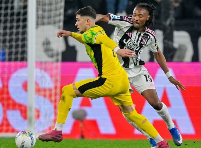 比賽剛剛開始不久,尤文圖斯就創(chuàng)造出非常好的機會。洛卡特利在禁區(qū)內(nèi)搶點頭球攻門,皮球彈地后飛向球門。門將反應(yīng)很快把球撲出。第14分鐘,尤文圖斯進球了!孔塞桑在禁區(qū)右側(cè)送出橫傳。伊爾迪茲直接低射。皮球鉆入球門右下角!這腳射門角度刁鉆,門將落地撲救已經(jīng)來不及了!尤文圖斯取得領(lǐng)先。3分鐘后,圖拉姆外圍嘗試一腳遠射,被撲了出去。